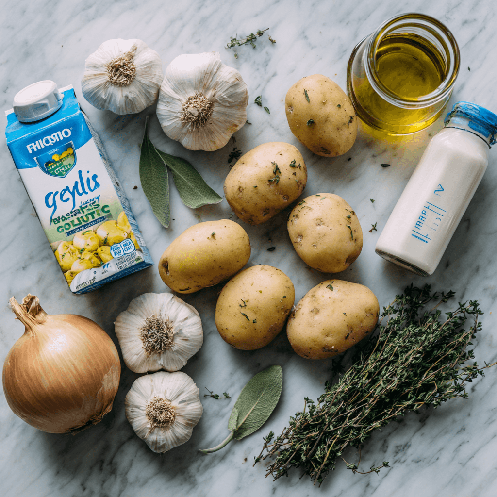 - Silky Soul: Potato puree creams naturally—country French garlic soup caresses.
