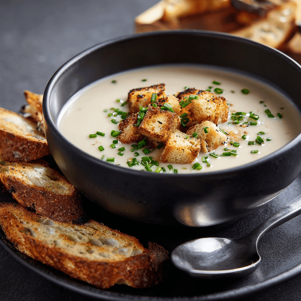 Embrace rustic elegance with this country French garlic soup recipe—a velvety blend of roasted garlic, tender potatoes, and fresh herbs simmered in a light chicken broth, finished with a swirl of cream for soothing depth. Ready in 30 minutes, this country French garlic soup recipe channels Provençal simplicity, where garlic’s mellow sweetness shines without overwhelming, perfect for chilly evenings or light suppers. The potatoes add heartiness while herbs like thyme and bay lend aromatic lift, making each spoonful a countryside escape in this country French garlic soup. Serve with crusty bread for dipping the fragrant broth. For soothing bowls, explore our soup-recipes or vegetarian-recipes. Garlic gurus? Check garlic-recipes. Swift starters? See quick-dinners.