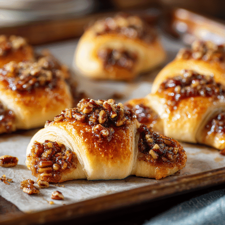 Pecan pie crescent rolls are the little bite that delivers big nostalgia: flaky layers, buttery caramel centers, and that unmistakable pecan crunch. With pantry staples and chilled dough, they’re a no-stress dessert you can bake anytime—and a guaranteed hit on any holiday tray.