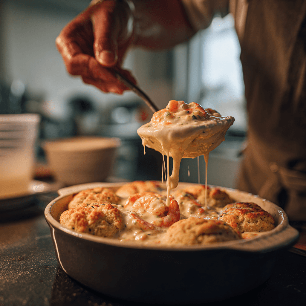 Dive into coastal luxury with this shrimp & lobster biscuit pot pie recipe—a creamy filling of succulent shrimp, tender lobster chunks, and vegetables enveloped in a flaky biscuit topping studded with herbs and cheddar for a pie that’s rich yet light. Ready in 35 minutes, this shrimp & lobster biscuit pot pie recipe layers old bay-seasoned broth with buttery biscuits that bake golden and pull apart steamily, evoking seaside suppers in every scoop. The seafood simmers briefly to stay sweet, while the topping soaks up savory juices without sogginess, making this shrimp & lobster biscuit pot pie a showstopper for date nights or dinner parties. Spoon from the dish family-style in this shrimp & lobster biscuit pot pie. For seafood symphonies, explore our seafood-recipes or pie-recipes. Biscuit buffs? Check biscuit-recipes. Oven opuses? See one-pot-meals.