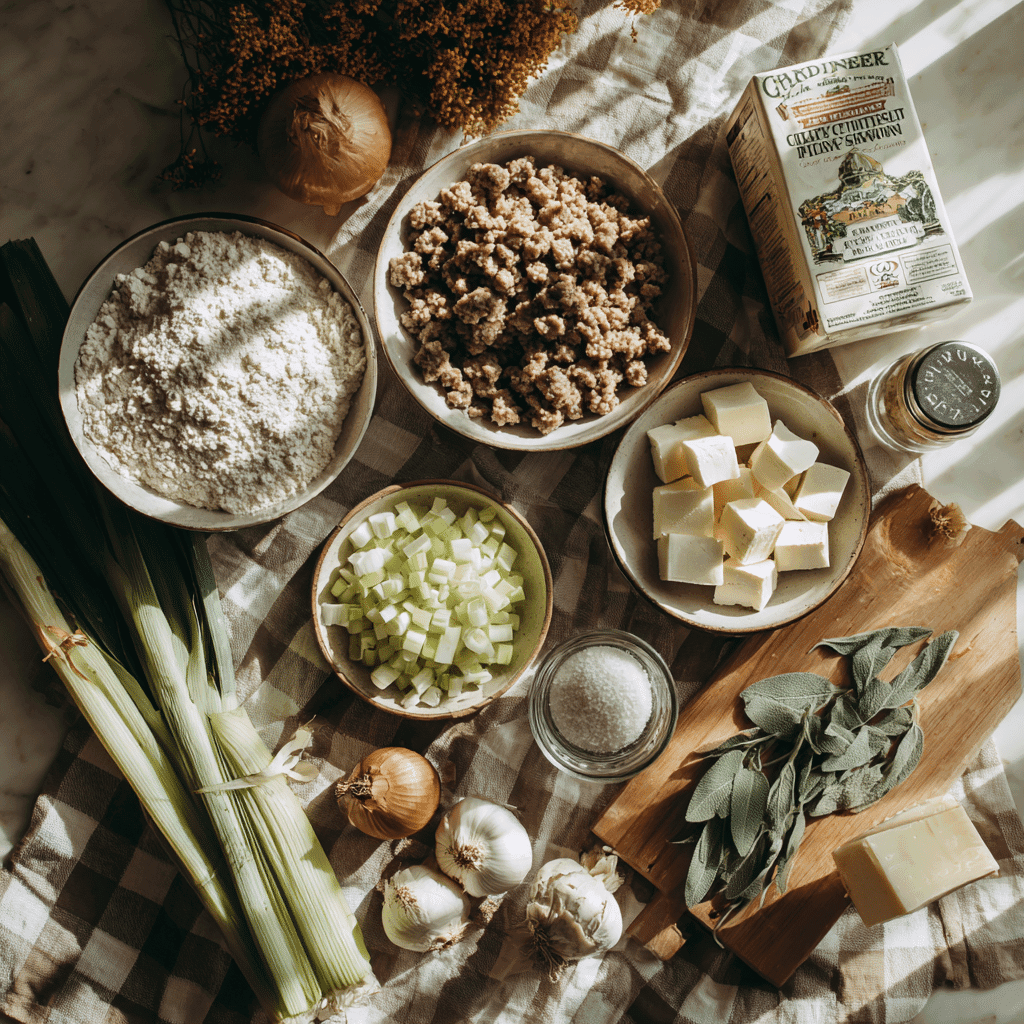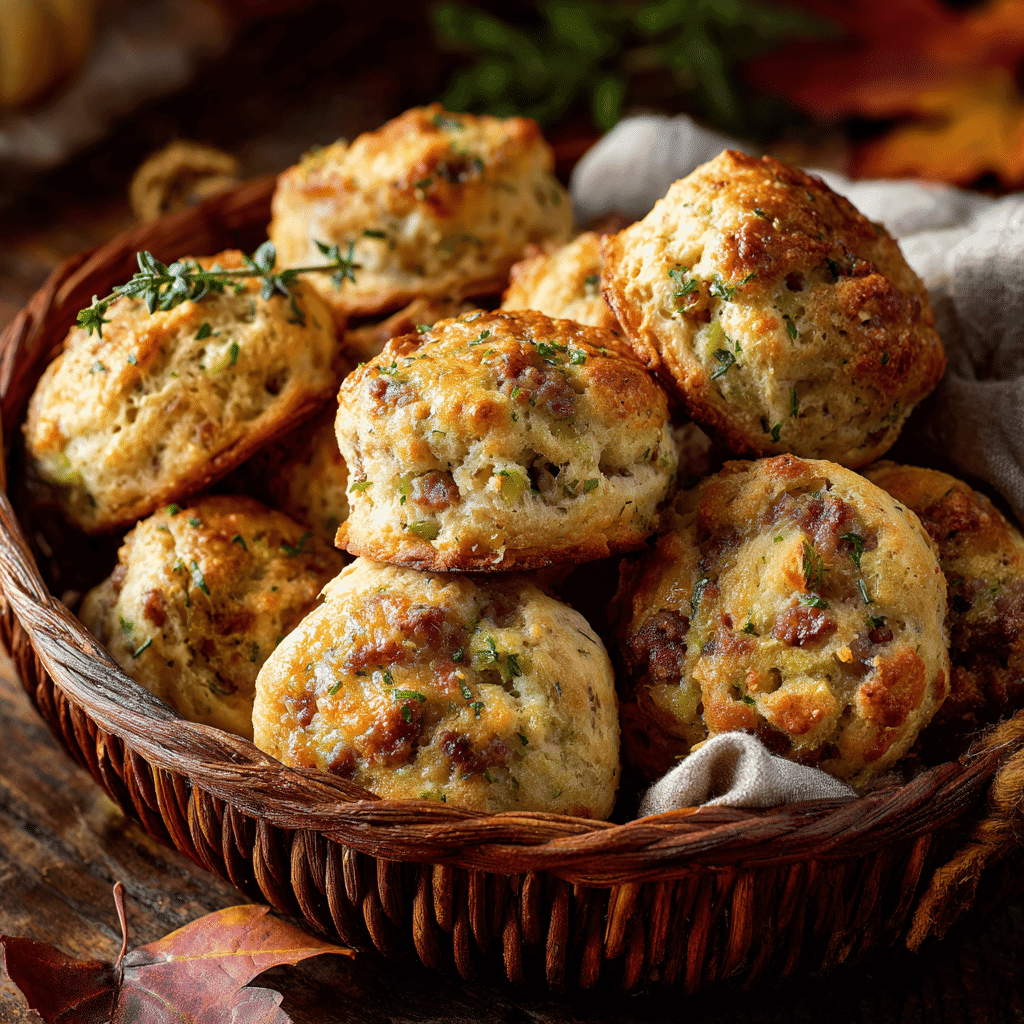 This recipe reimagines classic stuffing as portable, pillowy drops: a quick buttermilk dough flecked with sautéed sausage, finely chopped celery and onion for mirepoix magic, bound with fresh sage and poultry seasoning, then baked to flaky perfection with a sage butter glaze for shine. It’s a fusion of Southern biscuit ease and Yankee dressing soul—savory bites, herb-kissed crumb, and optional dried fruit pop—offering all the feast flair without the foil pan fuss.