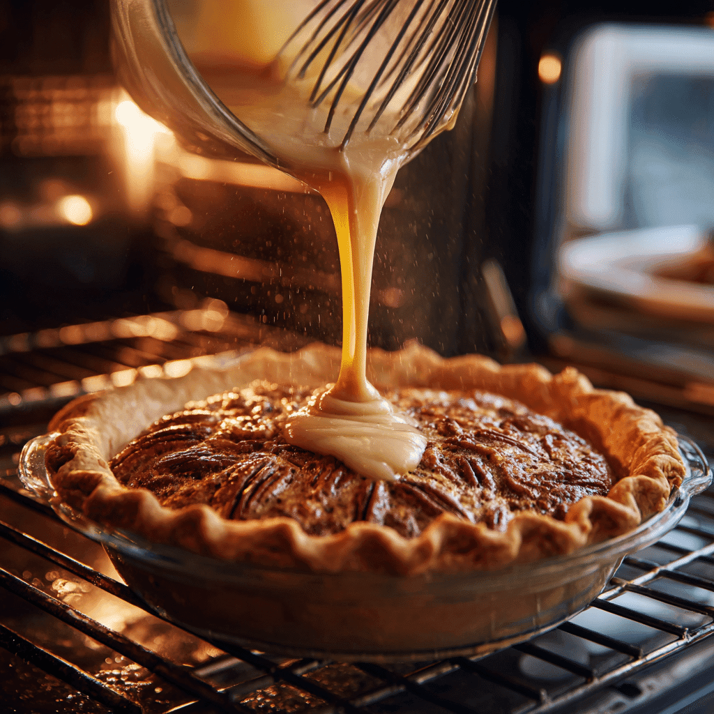 Pour hot custard over baked pie; bake 10-15 minutes more until set (jiggle slightly)—the cream firms gently. Cool 30 minutes; dust powdered sugar and extra pecans—the freshness brightens toffee apple pie with vanilla custard. Serve warm with ice cream—pairs with tea for balanced toffee apple pie with vanilla custard.
